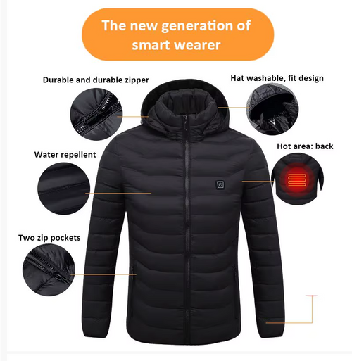 Campera térmica con sistema de calefacción USB y hasta 9 zonas de calor distribuidas en el cuerpo. Ajustá la temperatura según el clima y mantenete abrigado incluso en condiciones extremas.